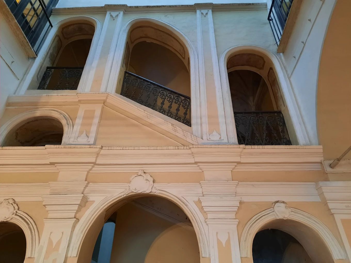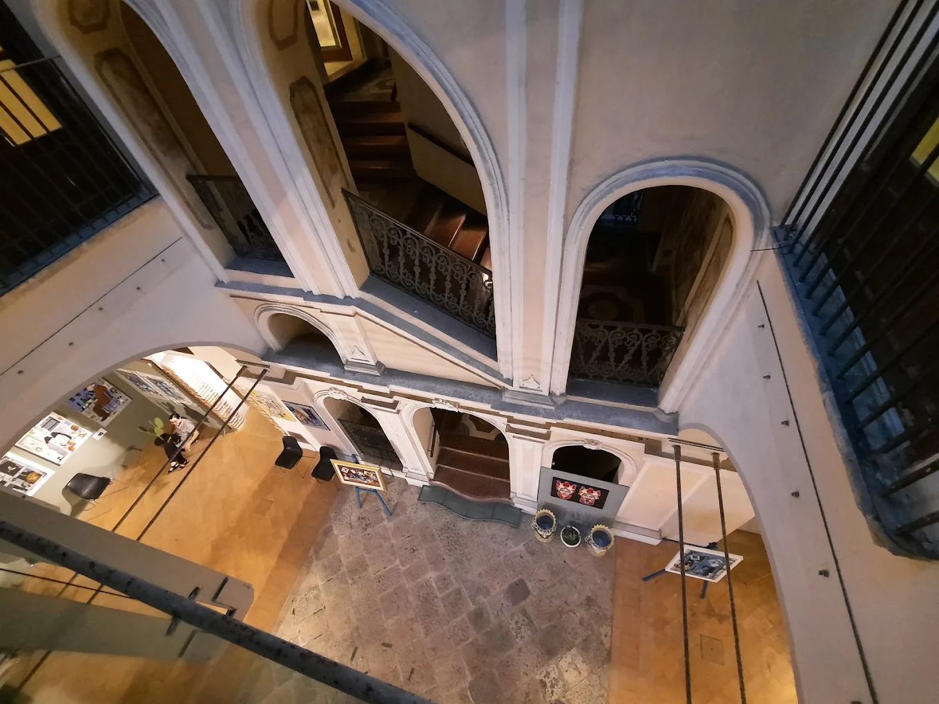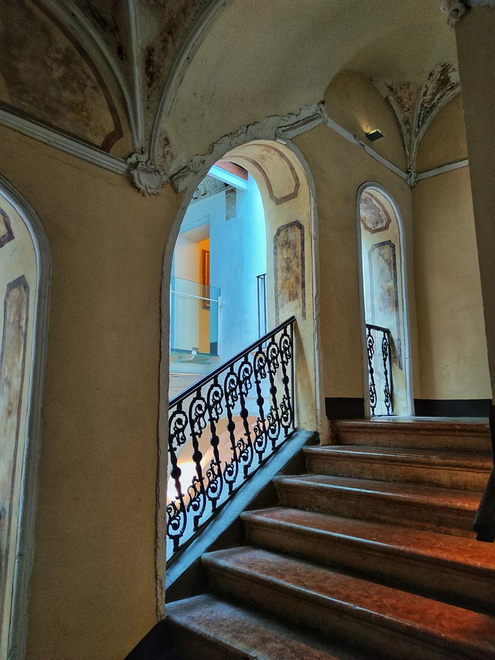 Il palazzo, recentemente restaurato, ospita oggi la Biblioteca Comunale (al secondo piano, dove è possibile ammirare un cospicuo fondo librario arricchito, tra l’altro, da incunaboli e cinquecentine) ed è sede di frequenti convegni, esposizioni ed incontri culturali, che si svolgono perlopiù al primo piano (cosiddetto piano nobile), dove pavimentazioni settecentesche, affreschi – alcuni dei quali risalenti ai primi del Novecento – ed antiche carte da parati impreziosiscono gli interni di questa austera residenza, la cui facciata, realizzata nella prima metà del XVIII sec., è ingentilita da pregevoli decorazioni in pietra da taglio.