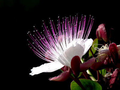 Risalendo la scalinata del Santuario, accanto al cancello, si apre, in direzione del bianco Faro dei naviganti, uno stretto viottolo tra i tradizionali muri a secco di Capo Milazzo (“ammacìe”) ed i fichi d’india, al termine del quale, sulla sinistra, si accede al sentiero che conduce a Punta Messinese, l’estremità del Promontorio e della penisola milazzese. Qui gli ulivi selvatici caratterizzano il paesaggio, con ai loro piedi le giallognole distese in fiore del “Crysantenum coronarium”, pianta spontanea tipica del Capo. Non mancano gli eleganti fiori bianchi della pianta del cappero, che vegeta indisturbata anche nelle antiche muraglie della cittadella fortificata, con la quale la Baronia condivide pure le tane ed i cunicoli di furbissimi coniglietti selvatici che scorazzano qua e là. Uno straordinario punto panoramico rialzato – dove non ci si può sottrarre dallo scattare una buona fotografia ricordo o dall’osservare i volatili in cielo (barbagianni, piccione torraiolo e gheppio, per citarne alcuni di quelli visibili tutto l’anno) – coincide con l’inizio della lunga scalinata che discende sino ai deliziosi “laghetti”, posti nella punta estrema della penisola, dove a sinistra è possibile ammirare lo Scoglio della Portella (o “Carciofo”), che mostra evidenti i segni delle erosioni provocate dal continuo sbattere delle onde, mentre a destra campeggia il suggestivo viso di pietra, scultura naturale ricavata nella bianca roccia, oltre la quale si apre la grotta marina di Gamba di Donna, che trae la propria denominazione da una selce che dal soffitto s’immerge in mare.