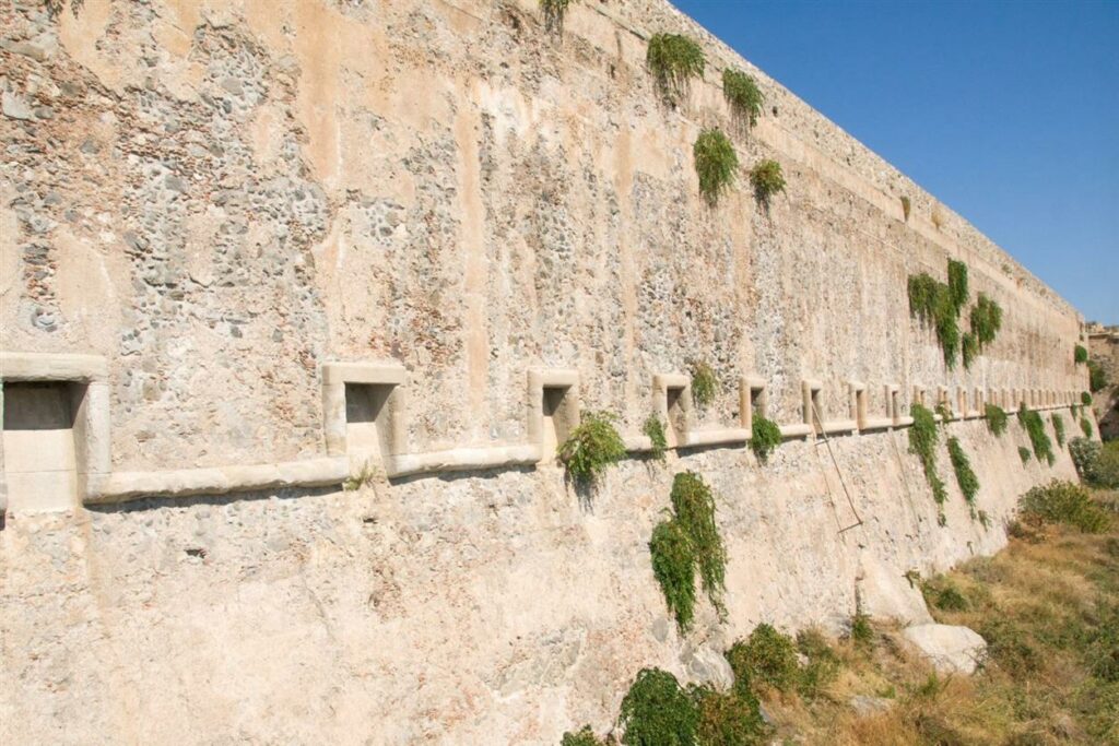 Imponente e suggestiva, la poderosa cinta spagnola, che comprende la cortina e i due bastioni ad essa affiancati (denominati rispettivamente «di Santa Maria» e «delle Isole»), è il risultato della progettazione di alcuni dei migliori ingegneri militari del tempo. Tra questi, il bergamasco Antonio Ferramolino, al quale si deve la realizzazione di uno dei luoghi più affascinanti e suggestivi dell’intera città murata: la galleria di contromina del bastione delle Isole, un lungo e tenebroso cunicolo, ricavato nel perimetro murario dello stesso bastione, che aveva lo scopo di prevenire gli attacchi delle mine nemiche, ossia dei tunnel sotterranei realizzati dagli assedianti al fine di raggiungere la base delle fortificazioni onde collocarvi potenti cariche esplosive capaci di distruggerle. Proprio per prevenire tali attacchi il Ferramolino consigliò la realizzazione di una galleria di contromina, dove l’assediato avrebbe pazientemente vigilato ascoltando l’eventuale approssimarsi dei colpi di piccone della costruenda mina nemica, che, non appena intercettata, sarebbe stata prontamente neutralizzata.