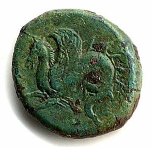L’ippocampo nella moneta del IV sec. a. C. rinvenuta nella città murata.